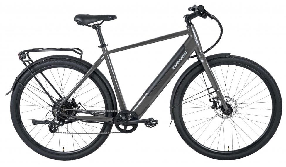 | Style | The new Dawes Scenic electric hybrid bike is a more minimalist version of the popular Dawes Spire range - " designed with a town and city rider in mind while still allowing you to take the more scenic route home. The Scenic has an integrated 375wh battery that delivers up to 40 miles/64km of range and can be charged from flat in 5 hours - " either with the battery installed on the bike or removed using the provided keys for improved safety and convenience. The added security of a key lock for the battery gives you peace of mind when parked up in a public place. The bike is powered by the well-regarded Bafang rear hub motor system to deliver 32nm of torque, making light work of hills and make powering along the flat ground a breeze. Select from 5 different power modes depending on how much assistance you want using the sleek and easy to use handlebar display which also shows the current battery level and speed. We've also fitted a walk assist mode that engages the motor to help drive the bike when pushing up steeper hills. The Scenic is equipped with 1x7 speed Shimano Altus gear components with trigger shifter for definitive shifting, and low maintenance cable disc brakes for powerful braking in even the worst of conditions. The Innova Roadrunner 700x45c have puncture protection for peace of mind and the contact points are comfort orientated, with ergonomically shaped lock-on grips and a soft Selle Royal Freeway saddle. The Scenic comes fully equipped as standard with a pannier rack and full-length mudguards to keep you as dry and clean as possible during the wetter seasons and kickstand for when you arrive at your destination. The Dawes Scenic is about getting from A to B quickly while still enjoying the buzz of riding an electric bike. Available in two sizes, we recommend Small for riders who are 5'0" to 5'6" (152cm to 168cm) and Medium for riders who are 5'6" to 5'11" (168cm to 181cm). |