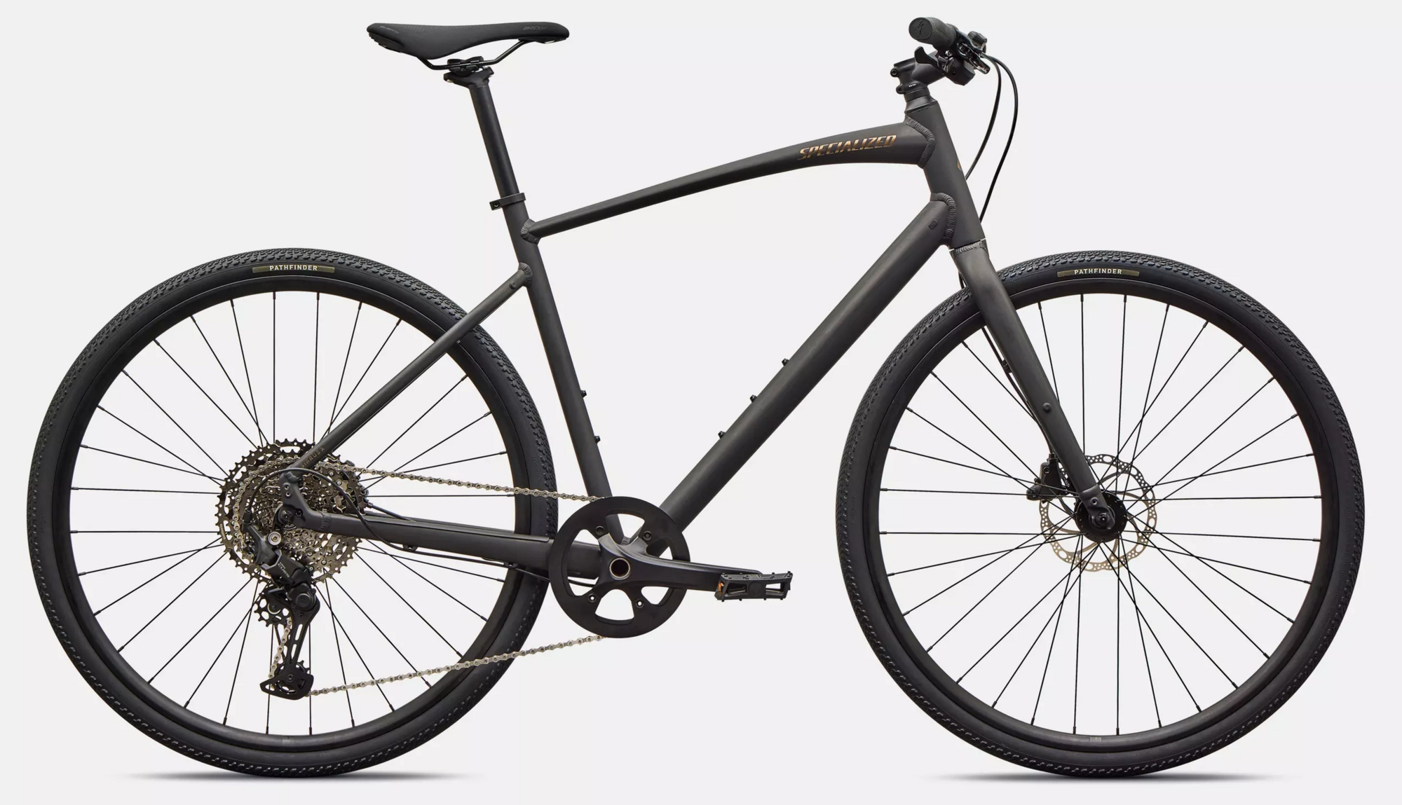 | Frame | Specialized A1 Premium Aluminium, Fitness Geometry, butted tubing, internal cable routing, flat-mount disc, quick-release, Plug + Play rack/fender mounts |