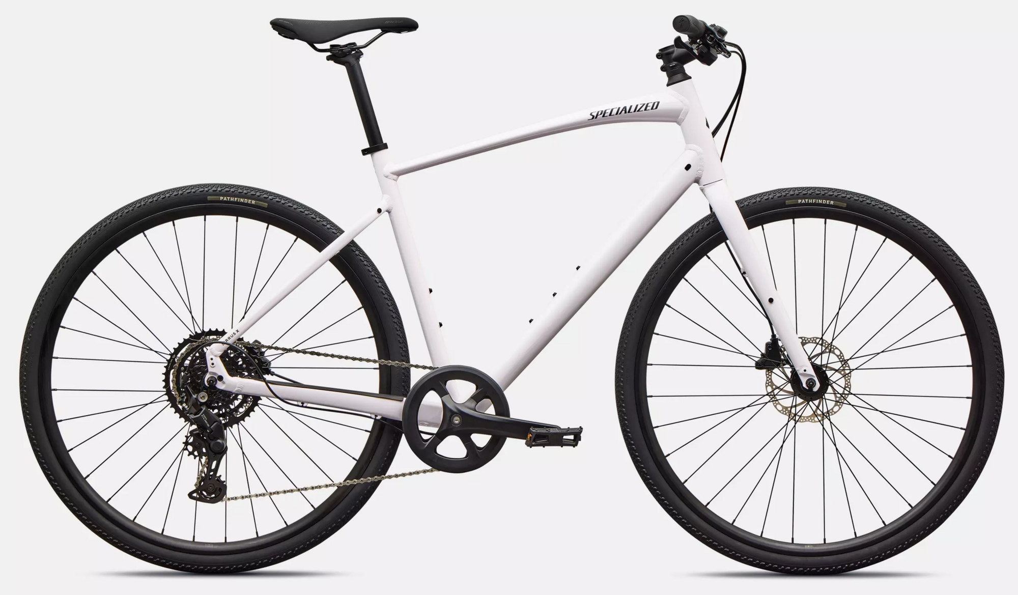 | Frame | Specialized A1 Premium Aluminum, Fitness Geometry, butted tubing, internal cable routing, flat-mount disc, quick-release, Plug + Play rack/fender mounts |