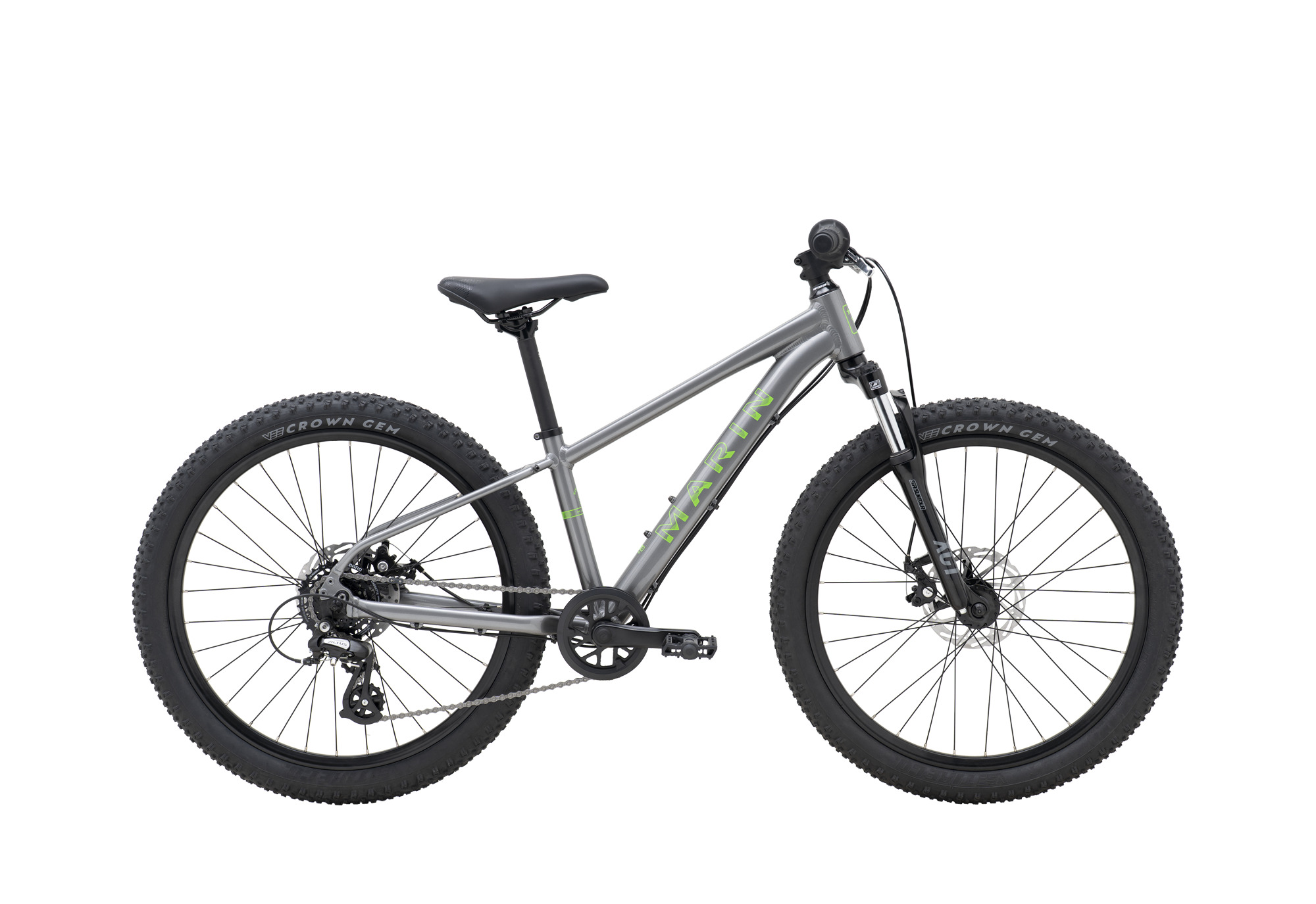 | Style | Ready to show the kids the trails - and end up chasing them down their first real singletrack? Kids love the Bayview Trail 24'' & 20'' for the fun ride and exciting looks. Parents love them for the details that set them apart from the rest: lightweight aluminum frames, suspension forks, disc brakes, and durable component choices. Well-considered spec choices such as our lightweight series 1 aluminum frame, durable Shimano drivetrain and kid specific short reach brake levers operating powerful disc brakes ensure the Bayview 24 is designed to get kids hooked on riding. Fun graphics and quality components will last for many years of neighborhood and bike park razzing. Frame: Series 1 6061 Aluminum, 20" Wheels, IS Seatstay Disc Mounts, 135mm Dropouts Fork: Steel Rigid Fork, 100mm Spacing, QR Lever Headset: FSA No. 10P Stem: Marin Alloy, 40mm Handlebar: Marin Riser, 30mm Rise, 580mm Width Grips: Marin Dual Density Brake Levers: Kids Specific Short Reach Alloy Lever Brakes Front: Tektro MDM280 Mechanical Disc, 160mm Rotor Brakes Rear: Tektro MDM280 Mechanical Disc, 160mm Rotor Tires: Multi Surface, 20" x2.125" Rim: Marin, Double Wall Alloy Hub Front: Forged Aluminum Alloy, 32H Hub Rear: Forged Aluminum Alloy, 32H Spokes: 14g Black Stainless Steel Derailleur Front: - Derailleur Rear: Shimano Altus, 7-Speed Shift Lever: Shimano Revo Twist 1x7-Speed Chain: KMC Z8 Cassette: Shimano CSHG200, 7-Speed, 12-32T Crankset: Forged Alloy, 30T, 115mm, Ring Guard Bottom Bracket: Sealed Cartridge Bearings, Square Taper Pedals: Kids Specific Nylon Pedal Saddle: Marin Kids MTB Seatpost: Marin Alloy, 27.2mm |