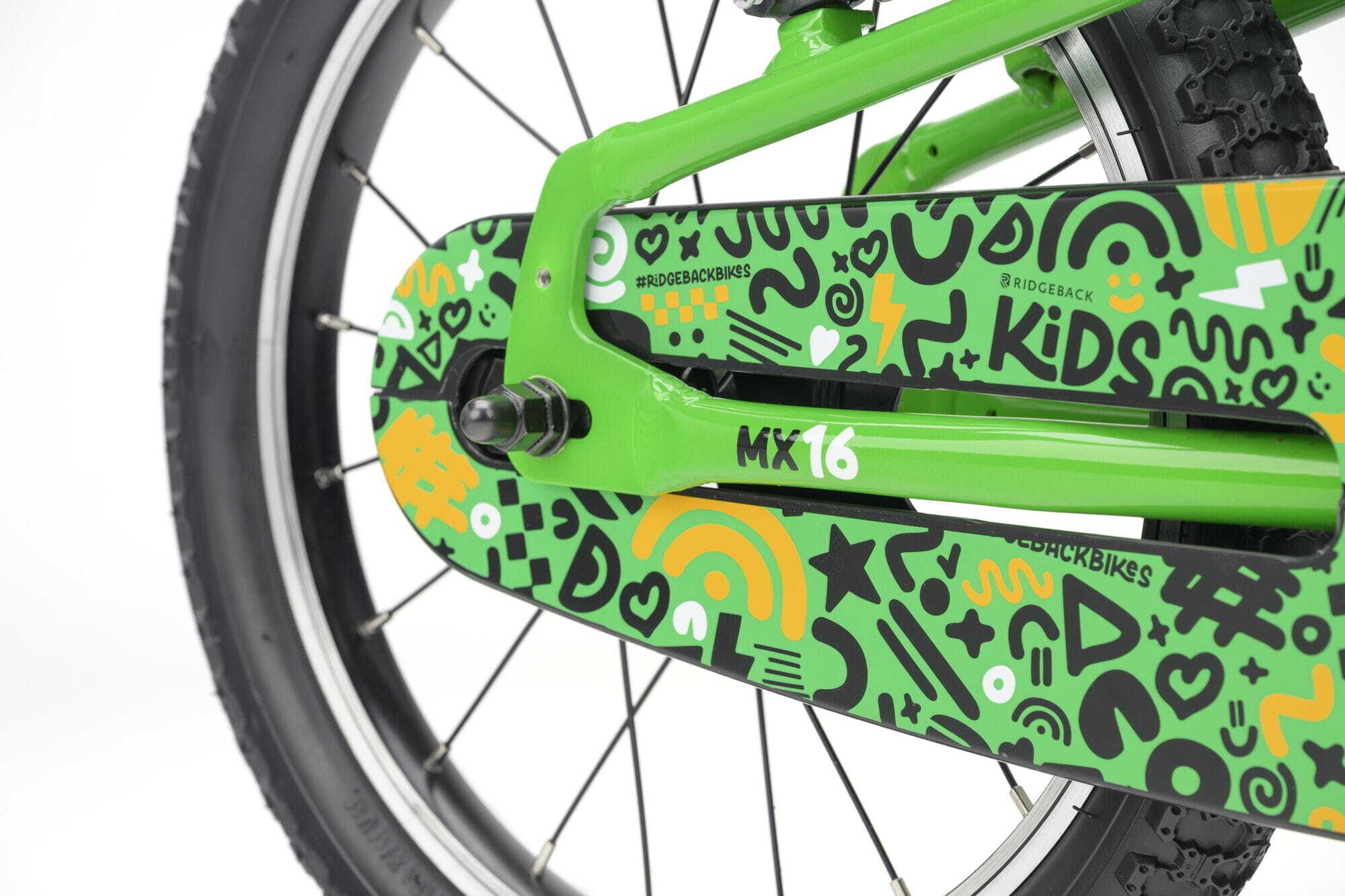 | Style | The MX16 - Big Adventures for Growing Riders Easy-Pedal Cranks - Our pedal cranks are ergonomically correct, proportional to the child's leg length. They also place the pedals closer to the bike's centre so that children can pedal as smoothly and naturally as possible. Smaller Grips - Our handlebars and grips are narrower diameter so they fit small hands better, for confidence and control as well as better ability to reach the brakes safely. Better Brakes - Brake levers are closer to the bars and adjustable for reach to suit smaller hands, and work perfectly with our smaller diameter grips. Lowered Frames - Our frames are lower where it counts, making it easier to get on and off and increasing clearance for greater confidence. Steering Limiter - To help prevent falls when learning to co-ordinate pedalling and cornering, the steering has a limit stop that helps avoid an over-steering situation. For young pedallers aged 3½ to 6 years old, the MX16 is a compact package of fun that builds real riding confidence from the very first pedal stroke! Easy to adjust for a perfect fit as they grow, the MX16 is designed to keep up with your little rider every step of the way. A handy chain case keeps everything tucked neatly away - no messy chain, no fuss - while grippy tyres give young adventurers the freedom to explore paths and tracks with confidence. Whether it's a spin around the garden or a trip to the park, the MX16 makes every ride an adventure. Ready to pedal? The MX16 is ready when they are. |