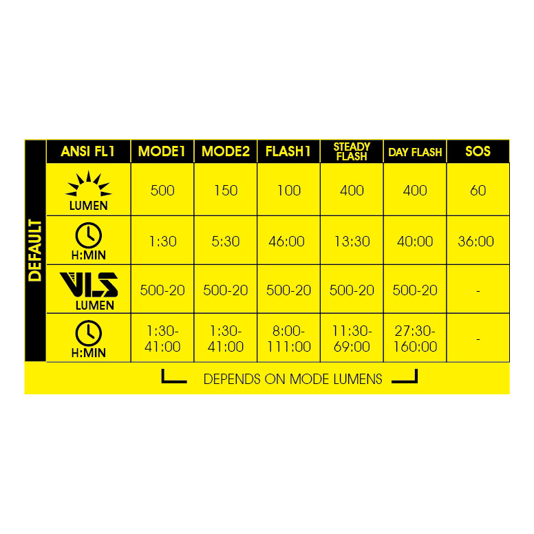 Features - 6 modes: MODE 1 / MODE 2 / FLASH 1 / FLASH 2 / DAY FLASH / SOS