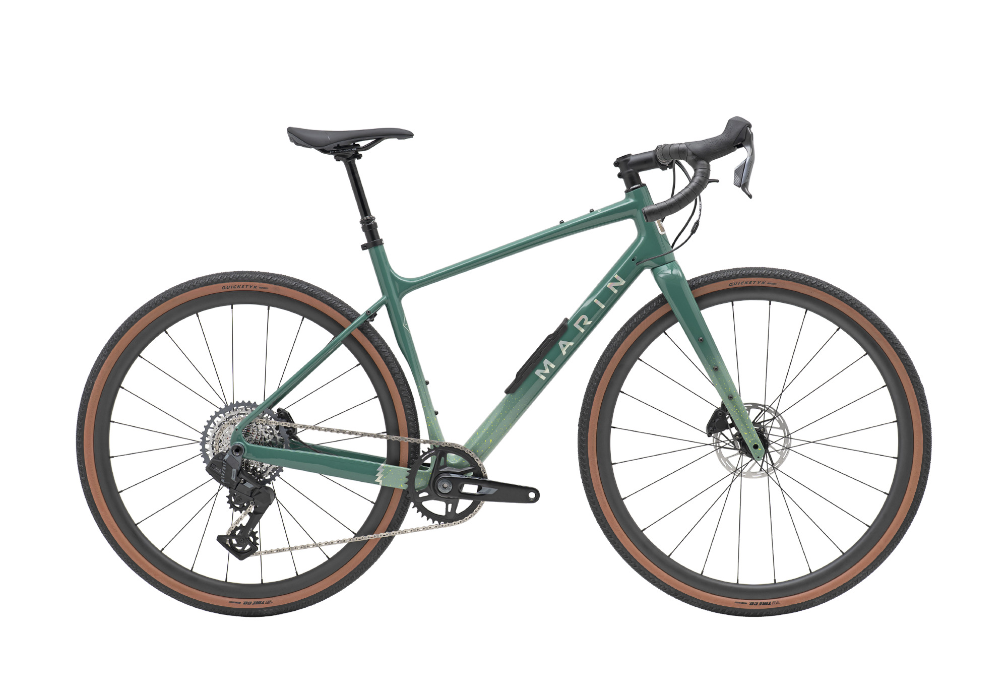 | Style | Named after one of the most iconic sections of coastline and Insta-inspiring gravel riding of the American West, the Marin Headlands embodies everything about this beautiful and rugged terrain. We took our do anything gravel disruptor and made it even better! For 2026 the full unidirectional carbon chassis has had some purposeful upgrades and improvements! The 1 x specific construction of the frame still means short chainstay which can now accommodate up to a whopping 700 x 50 tire. The dropouts have been updated to a UDH setup to future-proof compatibility and the downtube now has our proprietary Bear-Box in frame storage to further increase carrying capacity for adventures. The short chainstay, longer top tube and shorter stems that you've all come to love about the Headlands, remains a fundamental piece of this gravel ripping puzzle meaning its stable and comfortable on the flat but allows increased confidence when the trail gets technical. Internal cable routing and lots of mounts on the frame allows you to fit the bike with anything from water and tubes, to a full custom frame bag from your favorite maker using the attachments found around the front triangle, while conventional rack and fender mounts can transition the bike into a capable winter commuter. The Headlands 3, the creme de la creme, the king of the crop - our top tier build for gravel nirvana. The same carbon frame and fork with our in frame Bear Box storage is now adorns with a full 1 x 13 Sram Rival wireless transmission, Sram Rival hydraulic disc brakes, a TransX dropper post and a stiff, light and efficient Novatec G24 carbon wheelset. A Marin finishing kit tops off the boutique build list - we're very excited for this one! Frame: Unidirectional Carbon Beyond Road Platform, 1x Drivetrain Specific, 700c x 50mm Compatible, Flat Mount Disc, 142x12mm Thru-Axle, UDH Dropout, Internal Housing Routing, Mudguard and Rear Carrier Mounting, Bear Box Downtube Storage Fork: Marin Full Carbon w/ Tapered Steerer, 12mm Thru-Axle, Flat-Mount Disc, Fender Eyelets Headset: FSA Orbit IS, Sealed Cartridge Bearings, 1 1/8" x 1 1/2" Stem: Marin 3D Forged Alloy Handlebar: Marin Butted Alloy, Compact 16º Flared Drop Grips: Marin Shock Absorbing Tape Brake Levers: SRAM Rival XPLR w/ Inegrated Shifter Brakes Front: SRAM Rival XPLR Flat-Mount Hydraulic Disc, 160mm Rotor Brakes Rear: SRAM Rival XPLR Flat-Mount Hydraulic Disc, 160mm Rotor Tires: Vee Tire Co., QuikStyk, 700x45,Folding Bead, Tubeless Compatible Rim: Novatec, G24 Carbon, 24mm Internal, 24 Hole, Tubeless Compatible Hub Front: Forged Aluminum Alloy, Disc, 24H Hub Rear: Forged Aluminum Alloy, Disc, 24H, XD Driver Spokes: 14g Stainless Steel Derailleur Front: - Derailleur Rear: SRAM Rival XPLR, 13-Speed Shift Lever: SRAM Rival XPLR, Wireless Chain: SRAM Rival 13-Speed Cassette: SRAM CS-XG-1351, 10-46T Crankset: SRAM Rival XPLR, 40T Bottom Bracket: SRAM DUB BSA Pedals: - Saddle: Marin Beyond Road Concept Elite Seatpost: TranzX YSP38J, Size 49-54 70mm, Size 56-60 110mm Travel, 27.2mm Extra1: Bear Box Storage Bag |