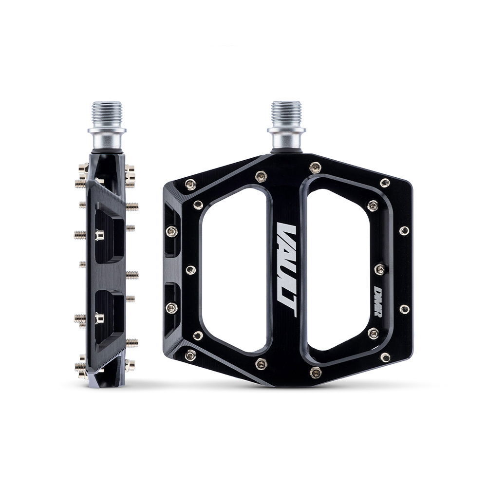 The DMR Vault pedal is a tuneable MTB flat pedal designed specifically for riders who want a bigger platform. Equally at home on an all mountain or downhill setups, the DMR Vault pedal offers great stability and grip for the bumpiest of trails Colour: Gloss Black The platform (top edge where the foot sits) is 105mm x 105mm The pedal body shape is 105mm x 115mm and the depth is 17mm concave foot bed 430g per pair. NB Torque setting at the Axle to Crank, for all the DMR Bikes pedal range, is 40 - 55Nm. |